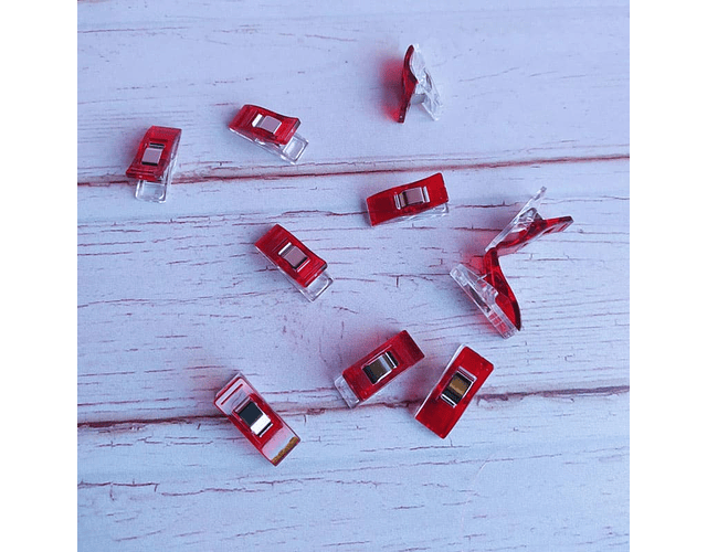 Tamaño de las pinzas: 2,7 x 1,0 x 1,5 cm (L x An x Al). La parte inferior plana de cada clip tiene líneas de marcación de 5 mm, 7 mm, y 10 mm, así que puedes medir hasta qué punto el clip está al alcance del borde de la tela.
